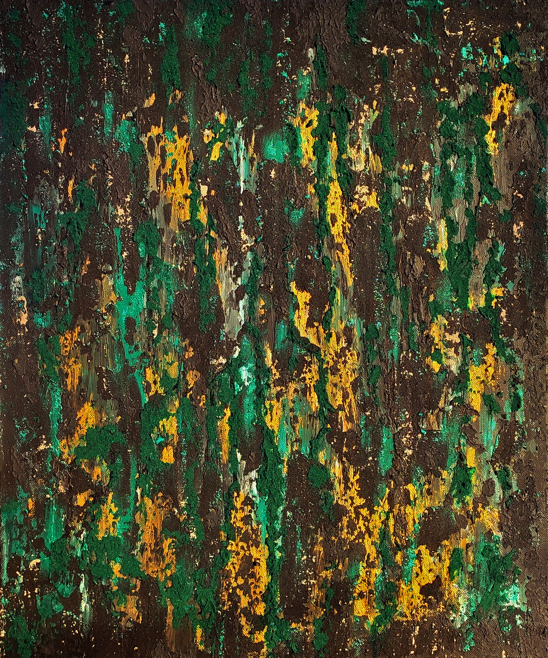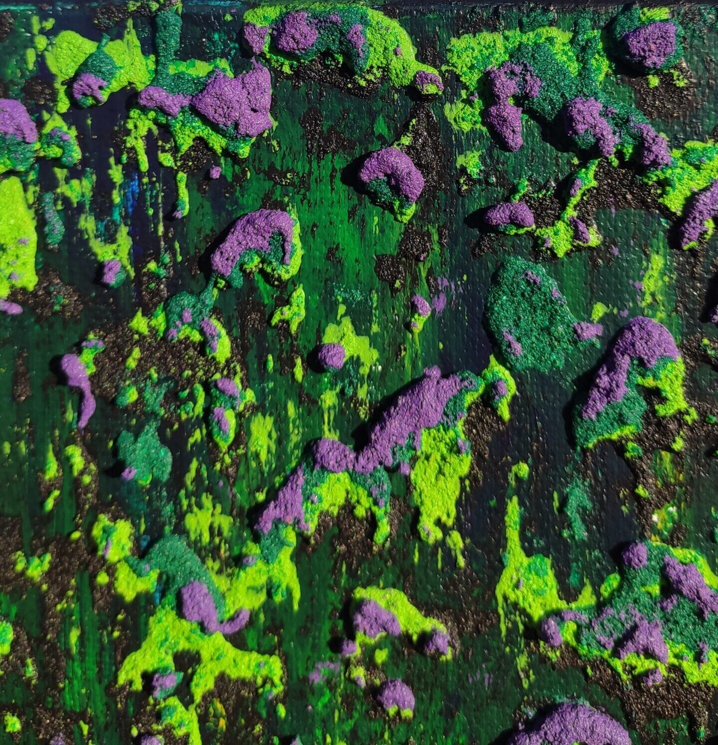 Working with acrylics and mixed media, each painting explores the dynamic interplay of gestural marks, atmospheric depth, and tactile surfaces. The works translate fleeting observations—shadows sliding over stone, light filtering through leaves, the movement of water—into bold, layered compositions that evoke the visceral magic often overlooked in the natural world.